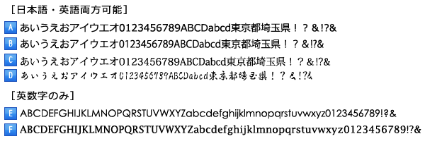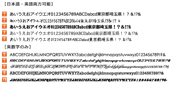 個人サイト様用文字入れ・作成代行に使用できるフォントは下記になります。番号で御連絡ください。