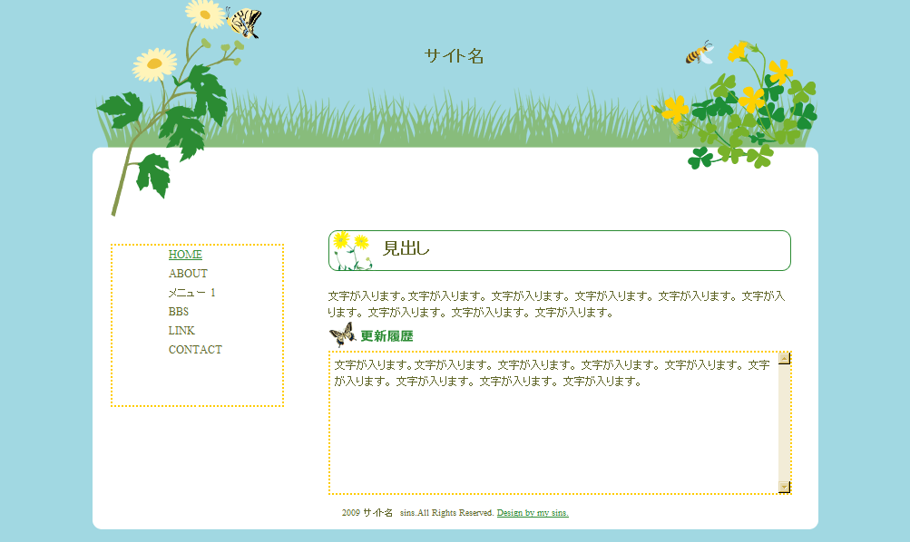 友達が背景素材屋をやるというので、テンプレをプレゼント代わりに作成しました。 折角なので配布してよ、とのことでしたので(苦笑)、配布致します。 このテンプレに限り、トップページのみのセットになります。 リンクページなどはご自由にカスタマイズしてください。 メニューはノーマルなリンク+プルダウンを混ぜております。 [全体図]サムネイルをクリックしてください。