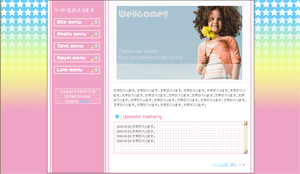 トップページ、アバウトページ(何もない基本テンプレ)、フォトメニューの中のギャラリー01ページ、リンクページ、メニュー画像。